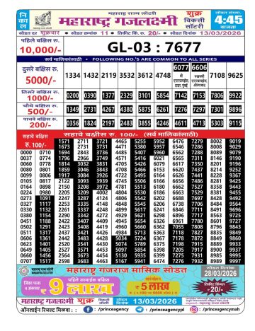 Maharashtra Gajlaxmi Lottery Result 13/03/26