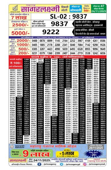 Maharashtra Sagar Laxmi weekly lottery result 24/11/2025