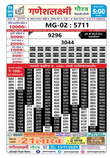 Maharashtra Ganesh Laxmi Lottery Result 13/11/25