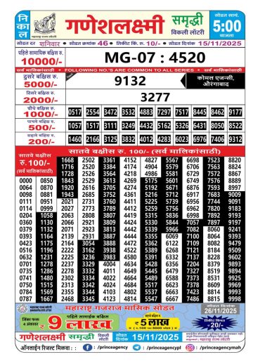 Maharashtra Ganesh Laxmi Lottery Result 20/11/25