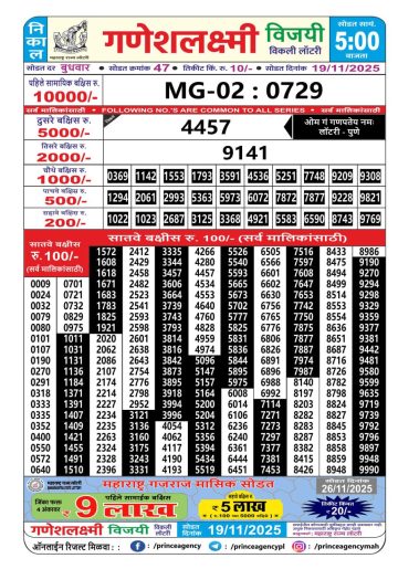 Maharashtra Ganesh Laxmi Lottery Result 19/11/25