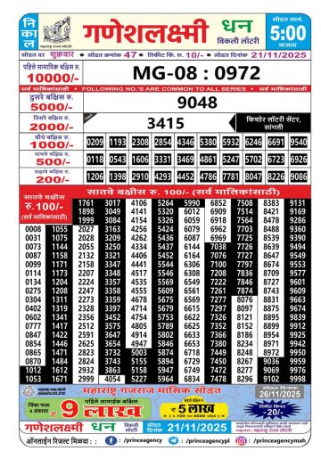 Maharashtra Ganesh Laxmi Lottery Result 21/11/25