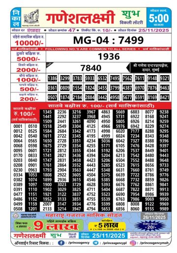 Maharashtra Ganesh Laxmi Lottery Result 25/11/25