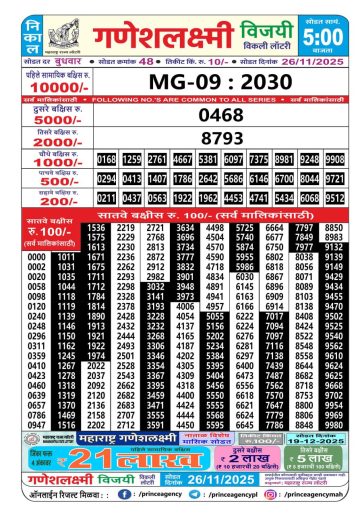 Maharashtra Ganesh Laxmi Lottery Result 26/11/25