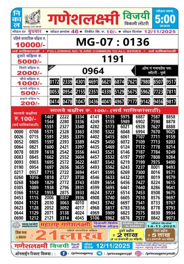 Maharashtra Ganesh Laxmi Lottery Result 12/11/25