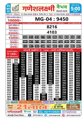 Maharashtra Ganesh Laxmi Lottery Result 02/11/25