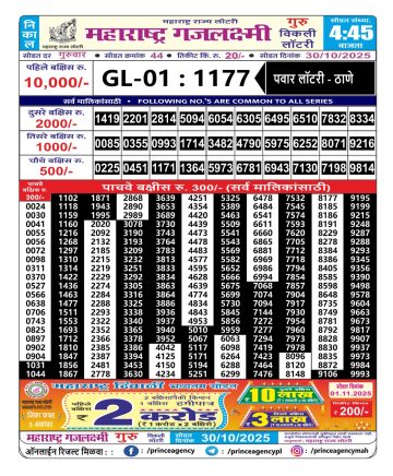 Maharashtra Gaj Laxmi Lottery Result 30/10/25