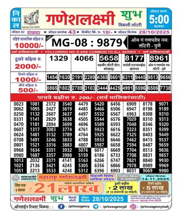 Maharashtra Ganesh Laxmi Lottery Result 28/10/25