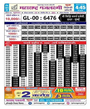 Maharashtra Gajlaxmi Lottery Result 31/10/25