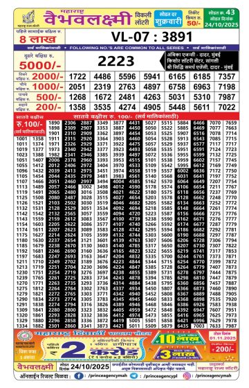 Maharashtra Vaibhav Laxmi Weekly Lottery Result 24/10/25