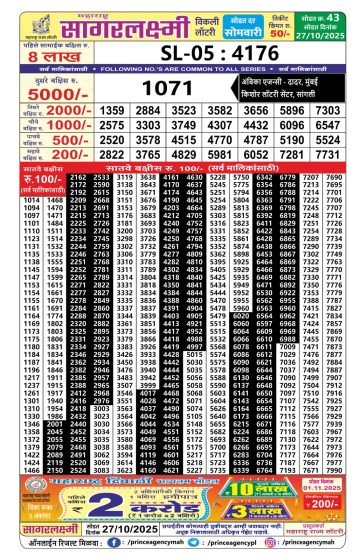• Maharashtra Sagar Laxmi weekly lottery result 27/10/2025