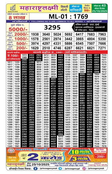 Maharashtra Laxmi Weekly Lottery Result 25/10/25
