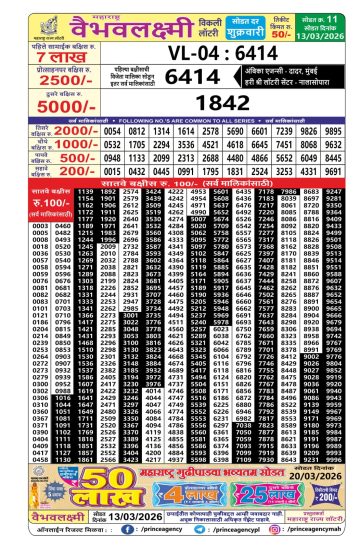 Maharashtra Vaibhav Laxmi Weekly Lottery Result 13/03/26