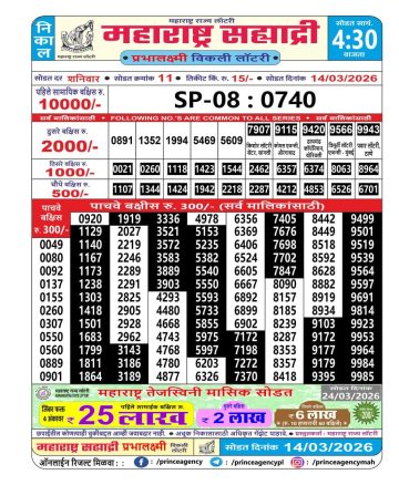 Maharashtra Sahyadri Weekly Lottery Result 14/03/26